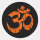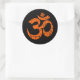 Verkratztes orange Yoga-OM-Symbol auf Schwarzem Runder Aufkleber