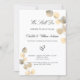 Weißer Hintergrund mit goldenem Eukalyptus, Sprigs. Personalisieren und Ihren Namen und Ihre Zeremonie Details. Zurück: goldener Hintergrund.