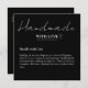 Verlass uns einen Review Handmade with Liebe Black Card Express herzliche Dankbarkeit und ermutigen zu Rückmeldungen mit einem charmanten, handgefertigten Liebe-Karte. Enthält einen "Verlass a Review" Aufruf zum Handeln und eine persönliche Touch für einen bleibenden Eindruck.