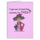 Verlassen eine Bett-Spaß-T-Shirts, Becher, Karten, Aufkleber, Taschen, Magneten, keychains, Verzierungen, mousepads, Kissen, Gepäckumbauten und anderes Morgenhaltungskleid und -geschenke für jedermann, das nicht genau ein Fan von früh aufwachen ist! Stella in ihrem rosa Nightgown und in Robe fragt "mich verließ ein Bett heute morgen für DIESES?".