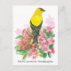 Eine bewegende Postkarte, die mit einem hellgelben und schwarzen Goldschmiedevogel mit rosa Rhododendron-Blume illustriert mit Tinte und Aquarellfarbe dekoriert ist. Inspiriert von der Staat Vogel und Staat Blume von Washington. Genießen Sie den Evergreen Staat! Sie können den Text mit Ihren Daten bearbeiten.