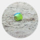 Verlierter grüner Eimer in Sand am Summer Beach Runder Aufkleber
