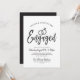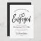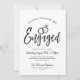 Eine lustige und einzigartige Schrift-Einladung, die speziell auf Ihre Engagement-Partei zugeschnitten ist. Es enthält die Worte "Verlobt" mit zwei Hochzeitsringen, die sich darüber befinden. Unter diesem ist Platz für Ihre individuellen Party- oder Veranstaltungsdetails. Auf der Rückseite ist weich schwarz, um die Vorderseite zu ergänzen.