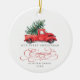 Dieser Vintage inspirierte Weihnachtsschmuck zeigt eine wunderschöne Aquarellbilder eines roten LKW, der einen Kiefernbaum trägt. Die Textfelder sind mit Ausnahme des Wortes "Verlobt" vollständig editierbar. Entfernen Sie dieses Wort einfach, indem Sie auf die Schaltfläche Löschen klicken und Ihren eigenen Text hinzufügen, wenn Sie ein anderes Wort benötigen.
