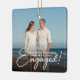 Fügen Sie Ihre Verlobung Foto vorne und hinten.. Stilvolle Loose und lässige Skripttypografie, Ihre Namen und Jahr oder anderen Text. Modernes, lässiges und elegantes Drehbuch. Feiern Sie verlobt zu sein und Ihre Hochzeit mit einem schönen Sake-Ornament. Lade dein Foto hoch, um einen blass Weihnachtsschmuck zu schaffen, eine wunderbare Geschenkidee für dich selbst, Mutter, Braut zu sein, Bräutigam zu sein oder andere Familie und Freunde. Schattet automatisch die perfekten Bereiche des Bildes.