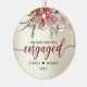 .Für Ihre ersten Weihnachten verlobt bietet dieses personalisierte schicke Urlaubsornament für Paare eine handgemalte Aquarellwand mit roten Pointsettien und lila Rose mit Baumwollbällen. Der Text unten liest in Jäger grün und bordeauxrot Skript "Unser erstes Weihnachten Verlobt" mit Ihren Vornamen verbunden mit einem Herz und Jahr, um sich anzupassen. Auf der Rückseite des Ornaments steht Ihnen ein Foto zur Verfügung, das Sie zu sich selbst wechseln können. Viel Glück auf Ihrer zukünftigen Hochzeit! Entworfen von Susan Coffey.