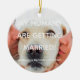 Verlobung Ankündigung Custom Foto Hund Ehepaar Weihnachtsfeier Keramik Ornament anpassbarer weißer Text