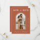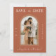Überraschen Sie Ihre Gäste mit diesen coolen Save the Date Cards mit trendigem Terracotta-Hintergrund und benutzerdefiniertem Foto in Bogenform. Fügen Sie einfach Ihre Daten hinzu, indem Sie auf die Option "Personalisieren Sie diese Vorlage" klicken.
