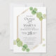 VERLOBUNG | Modernes Eukalyptus Foliage - Hübsche Aquarellturgrün-Eukalyptus-Blätter umgeben einen goldkristallförmigen Rahmen mit Ihren Hochzeitsdetails im Inneren. Das moderne Textlayout macht es zu einer trendigen Hochzeitssuite. Anpassen von Text, Schriftart, Farbe und Größe. Wir haben diese Vorlage erstellt, um es Ihnen leicht zu machen, mit Ihren eigenen Informationen zu personalisieren. Design erstellt für TheBarefootBride™ durch © WhimsicalArtwork™. Das ist Teil einer Sammlung von Hochzeitsartikeln mit passendem Hochzeitszubehör, Babydusche und anderen Veranstaltungsartikeln. Kontaktieren Sie uns, wenn Sie Hilfe benötigen.