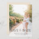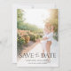Elegante und moderne Hochzeit Speichern Sie die Date-Karte mit einem Verlobung-Foto der Braut und Bräutigam auf der Vorderseite.