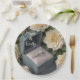 Diese Hochzeitszeitung-Teller verfügen über einen Ring, der von Blume umgeben ist. Die Namen können geändert oder entfernt werden.