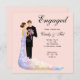 Feiern Sie die glücklichen Nachrichten Ihrer Verlobung mit Ihrer Familie und Freunde, indem sie diese schönes Verlobungs-Party aussenden, lädt ein. Dieses moderne Ausrüstungsbeschreibungen ein elegantes Paar gekleidet, in der Abendsabnutzung und einander liebevoll in betrachten. Die Pastellfarben machen für eine stilvolle Verlobungseinladung. Dieser Entwurf ist ein Teil einer Verlobungssammlung und auf Umschlägen, Weinaufklebern, Tabellenballonen, Papierservietten, Fahnen, Bevorzugungsumbauten und Bevorzugungskästen verfügbares.