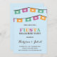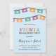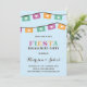 Diese moderne, bunte Verlobungs-Party Einladung kennzeichnet eine helle papel picado Fahne, eine verzierte Typografie und eine hübsche Kalligraphie.
