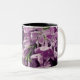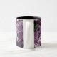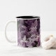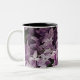 Die Fülle an lila Blume im Originalfoto von MaeFlowers auf dieser Tasse lädt uns ein, die Tiefen ihrer sanften Farben und Formen zu erkunden, einige offen und einige noch nicht vollständig geöffnet, einige im Licht und einige im Schatten.