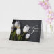 Dies ist eine elegante Karte, um Ihr Beileid zu senden. Der Strauß der weißen Tulpen wird auf einem tiefgrauen, bedrängten Hintergrund platziert, sodass diese Karte für männliche und weibliche Familienmitglieder geeignet ist, die einen Vater verloren haben.