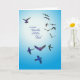 Express dein Beileid für den traurigen Verlust eines Vaters. Eine einfache Karte, um die traurigsten Gefühle auszudrücken. Eine Herde bunter Vögel fliegen in einem blauen Himmel.