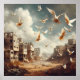 Verluste | Tauben, die über Ruinen fliegen Artwork von Arabix.