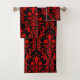 Vermillion Rotflorale Damast auf Schwarz Badhandtuch Set