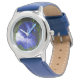 Kinderuhr aus Edelstahl mit blauem Lederarmband