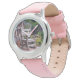 Kinderuhr aus Edelstahl mit rosa Lederarmband
