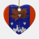 Eine kleine weiße Katze unter einem Ahornbaum, vermisst für jemand. Hübsche weiße Herzen und weiße Blumen, silberne Schnur auf dem Ahornblatt und Juwelen auf Blumen und dem Himmel.