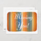 Schicken Sie eine Nachricht, um ihnen mitzuteilen, dass Sie sie vermissen mit einer unserer benutzerdefinierten Postkarten. Mit einer schönen orangefarbenen, blauen und gelben Decke mit handgeschriebenen Buchstaben geschmückt, die Phrase Vermisst Dich vorne. Passen Sie die Rückseite mit Ihrer Adresse an. Sehen Sie sich unsere komplette Auswahl an Grußkarten in unserem Zazzle-Shop an!