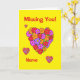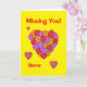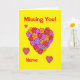 Vermisste Karte. Gelber Hintergrund mit Sträuchern von Blume in Herzform. Personalisieren Sie diese Karte einfach, indem Sie die Textfelder der Vorlage bearbeiten. Danke, dass du mir meine Entwürfe angesehen hast!