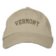 Eine Basis-anpassbare Cap bestickt mit dem (anpassbaren) Text Vermont. Wählen Sie Hut und Textfarbe und Stil Ihrer Wahl aus.