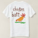 T-Shirt hee. Auf einer Seite sagt es "Vermutung, was?" mit meinen niedlichen Huhnillustrationen und dann auf der anderen Seite sagt es selbstverständlich "Huhn-Hintern." Der Witz, der nie alt wird. Schätzen Sie warum? Huhnschenkel.