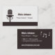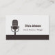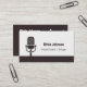 Ein Silhouetteikonenentwurf eines Mikrofons im dunklen bräunlichen schwarzen Kontrastieren zum Weiß. Auf der Rückseite ist musikalische Anmerkungen. Groß für jedermann, das ein vernehmbarer Trainer, Sänger oder in der Musikindustrie ist. Personifizieren Sie leicht mit Ihren Kontaktdetails im einfachen, Text zu lesen.