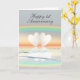 Grußkarte mit meinem Bild von zwei Papierherzen, die unter einem Regenbogen auf dem Wasser schwimmen.