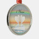 Metal-Ornament mit meinem Originalbild von zwei auf dem Wasser schwimmenden Papierherzen unter einem Regenbogen. Im Text steht "1 Jahr".