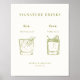 VERONA, moos grüne minimalistische Signatur Drinks, Hochzeitsschild Poster. Moosgrüne Typografie und illustrierte Cocktails auf weichem beigefarbenem Hintergrund.