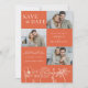 Diese Verona Sunset Elegant Orange Vier Foto Hochzeit Speichern Sie das Datum Einladung zeigt vier der Fotos des Paares, mit delikaten Linien Kunst Blume auf einem lebhaften orangen Hintergrund, ergänzt durch zeitgenössische Typografie und Skriptkalligraphie. Es ist vollständig anpassbar mit den Namen des Paares, den Einzelheiten der Hochzeit und den Fotos Ihrer Wahl. Das formelle Design und die Formulierung fügen Ihrer Hochzeitsfeier eine Touch der Eleganz hinzu. Das hintere Foto hat einen weißen Farbverlauf unten, sodass die Namen des Paares in jedem Foto angezeigt werden. Alle meine Designs können auf jedes Produkt übertragen werden, das Zazzle trägt. Für spezielle Wünsche oder Anfragen, senden Sie mir einfach eine Nachricht. Für Anfragen, Rücksendungen und Austausche wenden Sie sich bitte an den Zazzle Kundenservice unter https://www.zazzle.com/about/ask. ©PoppyMeadowDesigns 2023-2025