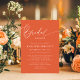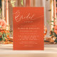 Feiern Sie die zukünftige Braut mit dieser schicken und modernen Brautdusche. Die warme Verona Sunset Hue schafft ein lebendiges und einladendes Ambiente. Die elegante Kalligraphie verleiht eine Touch der Eleganz. Einfach mit Ihren Veranstaltungsdetails personalisieren, um einen unvergesslichen Aufenthalt zu gewährleisten.