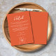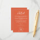 Diese Verona Sunset Orange Elegant Floral Wedding Hotel Enclosure Card präsentiert eine delikate Line Art Blume auf einem lebhaften orangen Hintergrund mit moderner Typografie und Skriptkalligraphie. Es ist vollständig anpassbar mit den Namen des Paares und den Hoteldetails. Das formelle Design und die Formulierung fügen Ihrer Hochzeitsfeier eine Touch der Eleganz hinzu.