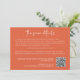 Diese elegante und minimalistische QR Code-Gehäusekarte wurde mit zeitgenössischer Eleganz entworfen. Die orangefarbene Verona-Verona-Verona-Verona-Farbe verleiht dem Hotel einen beeindruckenden, aber zeitlosen Look. Fügen Sie die URL Ihrer Hochzeitswebsite hinzu, und der QR-Code wird aktualisiert. Ideal für Paare, die ein stilvolles und modernes Ambiente für ihren besonderen Tag gewollt haben. Sie können den Text und die Hintergrundfarbe ändern, um dem Farbschema Ihres Hochzeitstages zu entsprechen. Klicken Sie auf Personalisieren/Anpassen, um weitere Bearbeitungen durchzuführen.