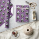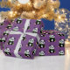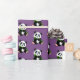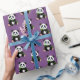 Geschenkverpackungspapier gezeigt in einer lila Hintergrundfarbe mit einem niedlichen Pandabärndruck.