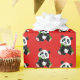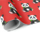 Geschenkverpackungspapier gezeigt in einer roten Hintergrundfarbe mit einem niedlichen Pandabärndruck.