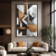 Geometrische abstrakte Komposition mit eckigen Formen in Holz-, Beton- und Steintönen. Zeitgenössischer konstruktivistischer Stil mit natürlichen Texturen. Perfekt für moderne Dekoration, Büros und Galerien. Ein Werk, das organische und geometrische Elemente in raffinierter und minimalistischer visueller Harmonie ausbalanciert.