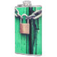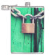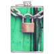 Dieser Kolben hat ein Schloss und eine Kette darauf.