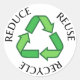 Aufkleber mit einem recycelnd Symbol in drei grünen Farbtönen und dem Text "Reduce Wiederuse recycle"