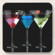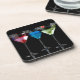 Verschiedene Cocktails in Martini-Brillen auf schw Getränkeuntersetzer
