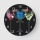 Verschiedene Cocktails in Martini-Brillen auf schw Runde Wanduhr