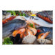 Verschiedene Meeresfrüchte in einem Restaurant. Fisch, Krabben und Garnelen auf einem Tisch.