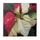 Keramik Kachel, die das Foto-Bild einer festlichen Poinsettia Pflanze mit rot-weiß, verschiedenen Blätter zeigt. Wählen Sie Ihre Kachelgröße aus. Ein lustiges, blumengeschmücktes Design für den Urlaub und macht eine schöne Küche Trivet.