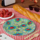 Verschiedene virtuelle Blume, bläuliche Blätter au Pappteller