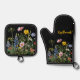 Verschiedenes Feld von Wildblumen auf schwarz Ofenhandschuh & Topflappen-Set