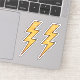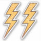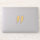Aufkleber mit einem gelben Blitz mit schwarzen Konturen und einer abgenutzten, bedrückten Textur. Set von zwei Aufklebern
