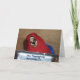 Die Feder-versierte Gruß-Karten des Scharlachrots mit Begleiter-Papageien-Haltung